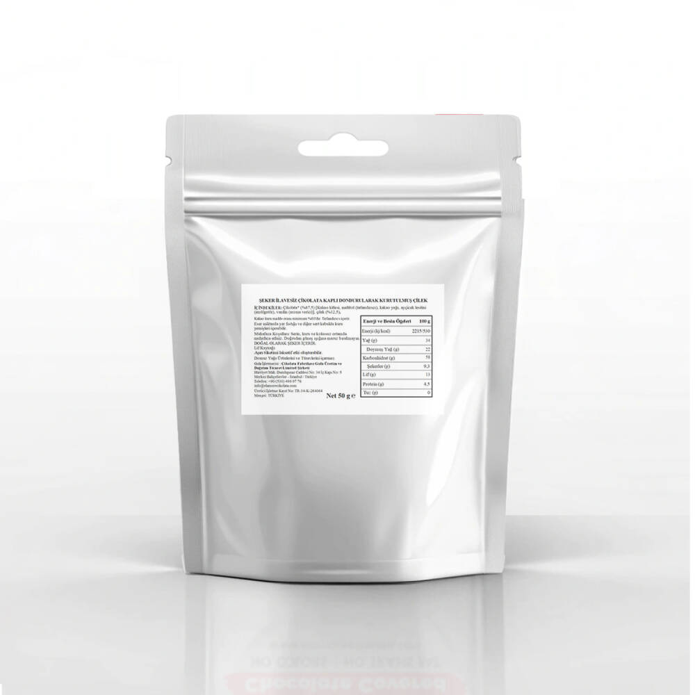 Elamore Şeker İlavesiz, Glütensiz, Vegan Freeze Dried Çilekli Bitter Çikolata - Doypack 50 gr