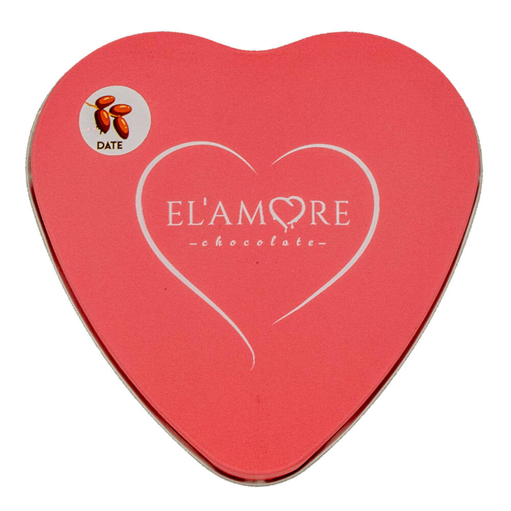 Elamore Şeker İlavesiz, Glütensiz, Vegan Hurmalı Bitter Çikolata - Pembe Küçük Kalp Metal Kutu, 80 g