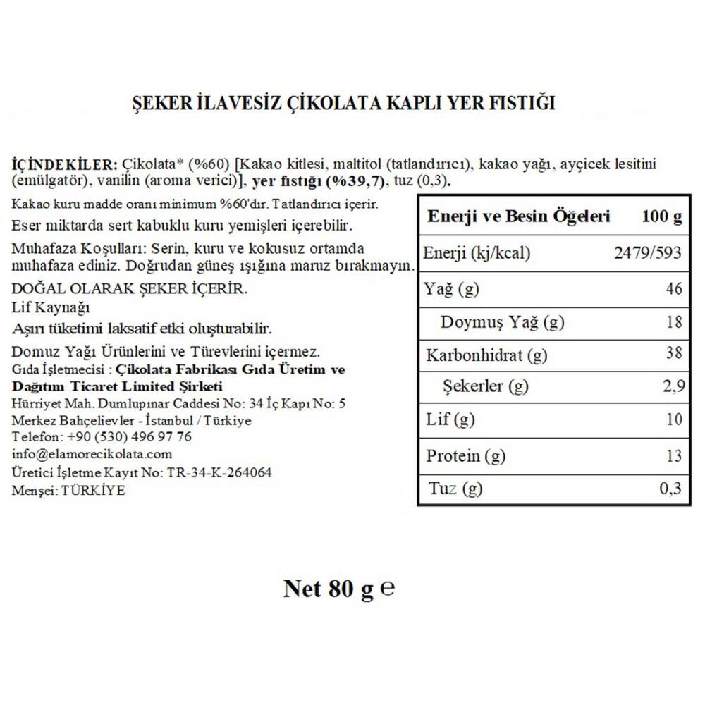 Elamore Şeker İlavesiz, Glütensiz, Vegan Yer Fıstıklı Bitter Çikolata - Pembe Küçük Kalp Metal Kutu,80 gr